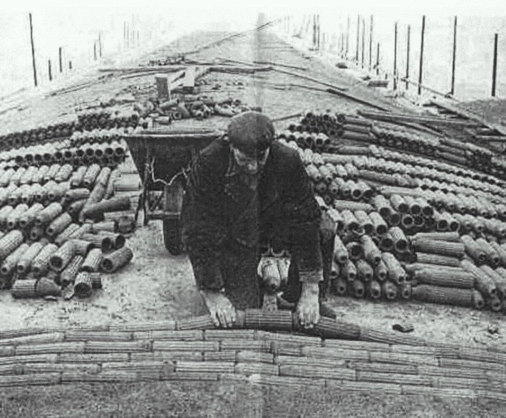 voor een deel met lucht. Die lucht zit in gebakken korte cylinders, die in elkaar