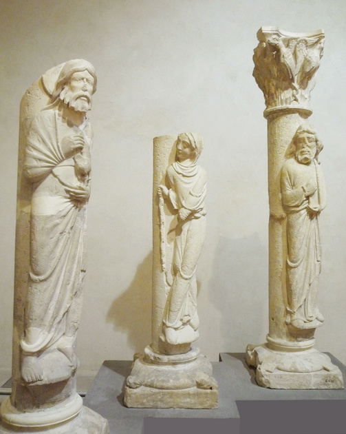 , zuilbeelden. Het middelste, de weduwe van Sarepta, is een kopie