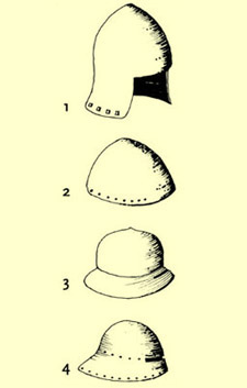 voor de muren had, waren er verschillende typen helmen in gebruik.