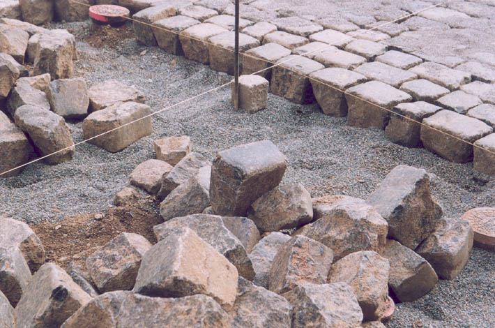 De bovenkant van de kassei is meestal ietsje bol, zodat een schuin gezakte steen geen scherpe richel oplevert.