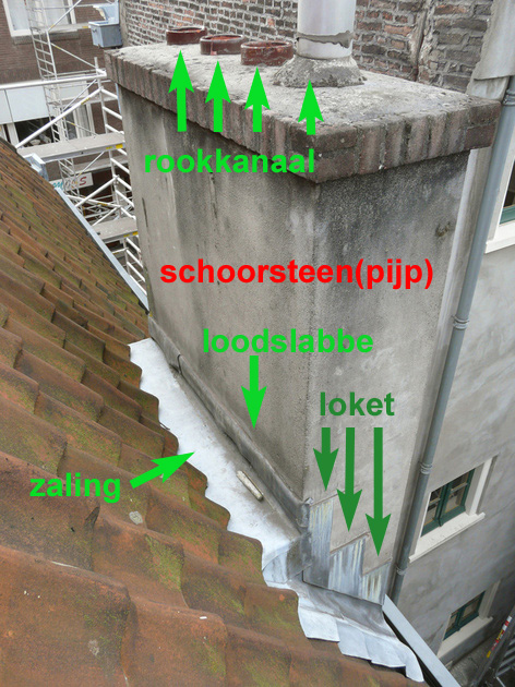 van deze schoorsteenpijp moet afwerkt worden met een gootje - de