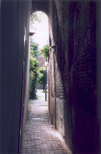 We kunnen een steeg definiëren als een smalle doorgang die niet doodloopt.