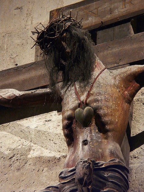 doornenkroon toegepast. Soms ging het nog verder en werd het hoofd voorzien van een pruik met echt