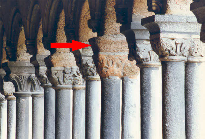 Die losse dekplaat is soms zo fors dat het lijkt alsof er een kapiteel op het kapiteel ligt.