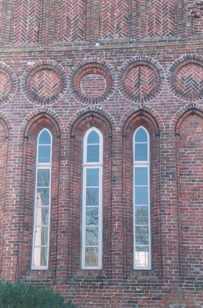 Door een aantal lancetvensters dicht naast elkaar te plaatsen, ontstaat een rijker beeld.
