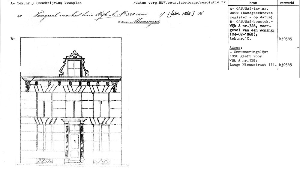 Utrecht - Lange Nieuwstraat 111 - gesloopt 1970 (oud adres)