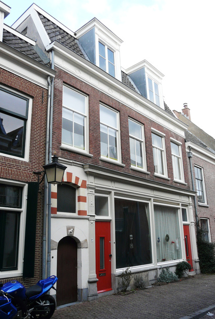 Utrecht - Vrouwjuttenstraat 6, met hierin links het poortje met de gevelsteen van de Eenhoorn