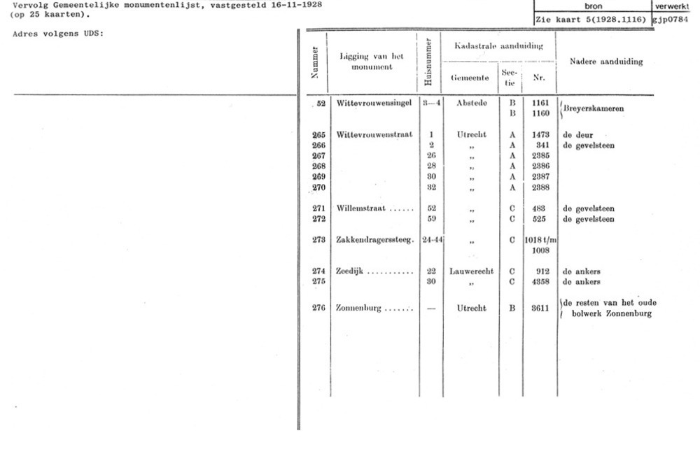 Monumentenlijst Utrecht, Gemeentelijke- - lijst A