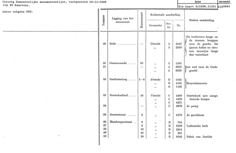 Monumentenlijst Utrecht, Gemeentelijke- - lijst A