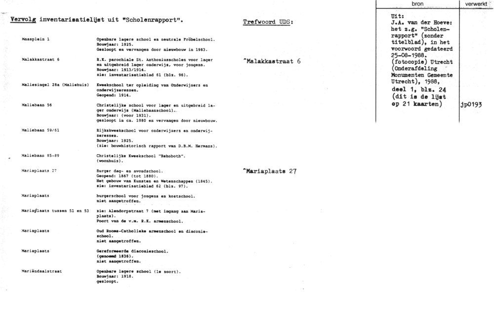 School - Utrecht - monumenten-inventarisatie