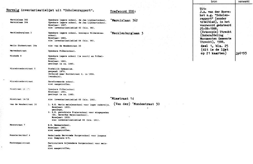 School - Utrecht - monumenten-inventarisatie
