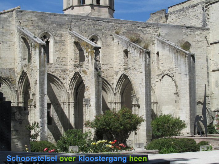 Doordat de kloostergang is verdwenen, is de relatie ervan met het schoorstelsel duidelijk te zien.