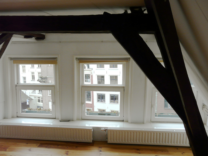 van het zoldergebint lichten de onderdelen blauw op, er kan op geklikt worden voor meer informatie.