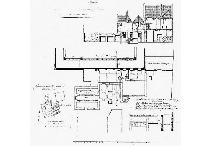 Opmeting uit 1895, gemaakt tijdens de sloop van de resten van het claustrale huis nr 7, om het terrein vrij te maken