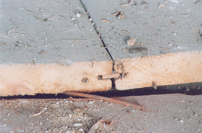. Linker middeleeuwse huis, verdieping, vloer boven voormalige raadszaal, vloerdeel met losse veer, gefotografeerd net na het doorzagen