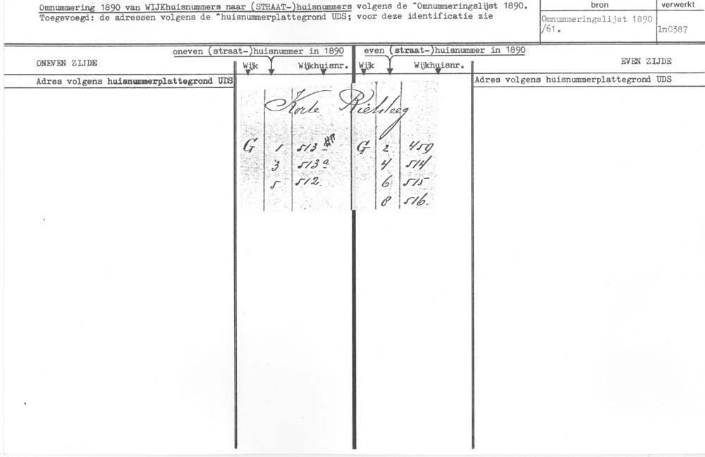 Utrecht - Korte Rietsteeg - huisnummering 1890.0001