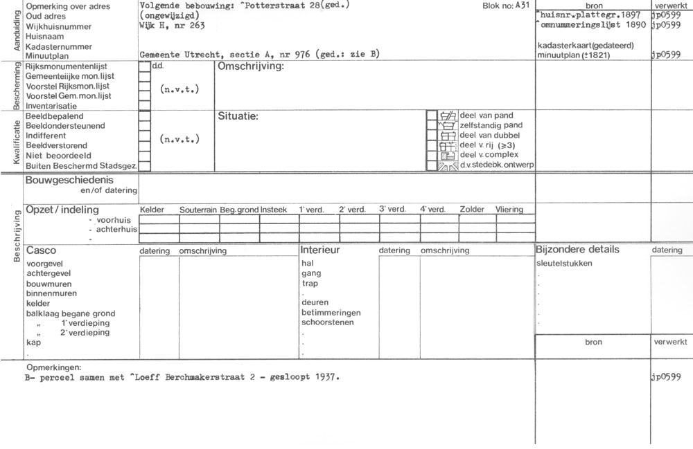 Utrecht - Potterstraat 28 - gesloopt 1937 - oud adres