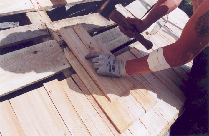 Lasa (= Laas, I) - San Giovanni Battista: aanbrengen nieuwe dakspanen op absis