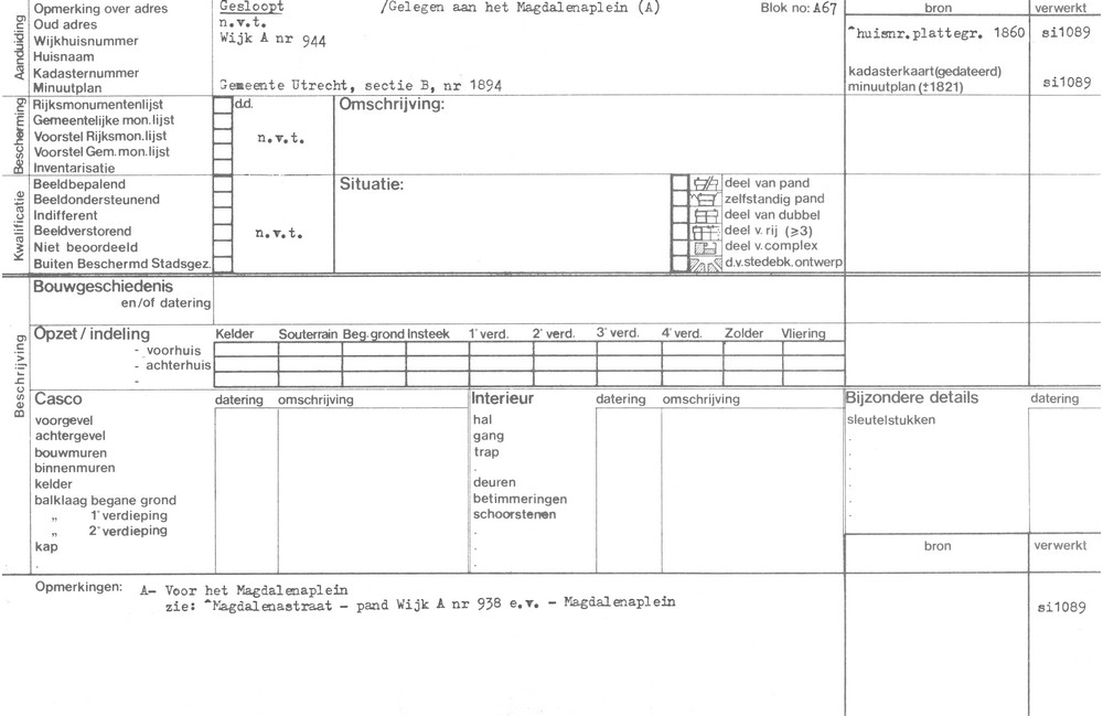 Utrecht - Magdalenastraat - pand Wijk A, nr 944