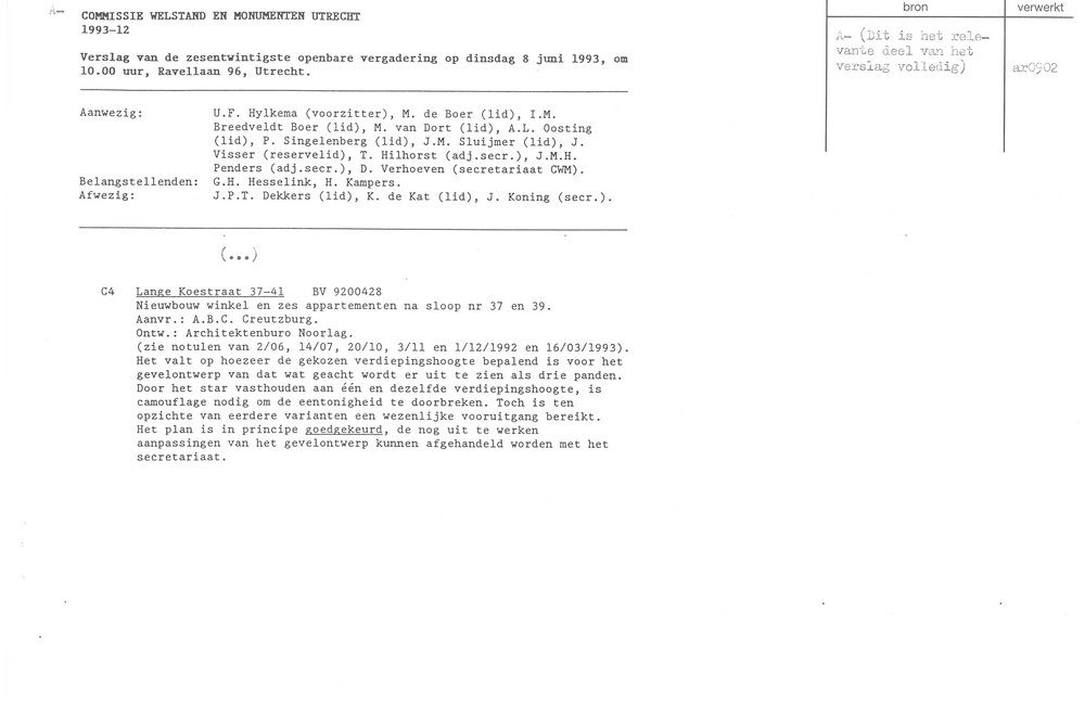 Utrecht - Lange Koestraat 37 e.v. - bouwplan 1992