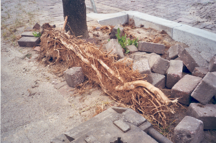 Utrecht - Koningsweg: afgehakte boomwortels langs fietspad