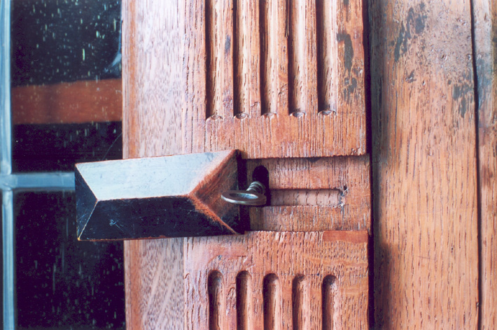 Nijkerk - Westkadijk - Hulkestein: enkele dagen vóór de sloop: kamer links-vóór, detail kastenwand met verholen slot