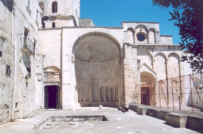 , absis (het schip is verdwenen). Links Tomba di Rotari met rijk portaal. Rechts de gevel van Santa Maria Maggiore