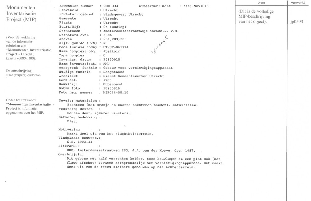 Utrecht - Amsterdamsestraatweg 283 - gebouw voor vernietigingsapparaat