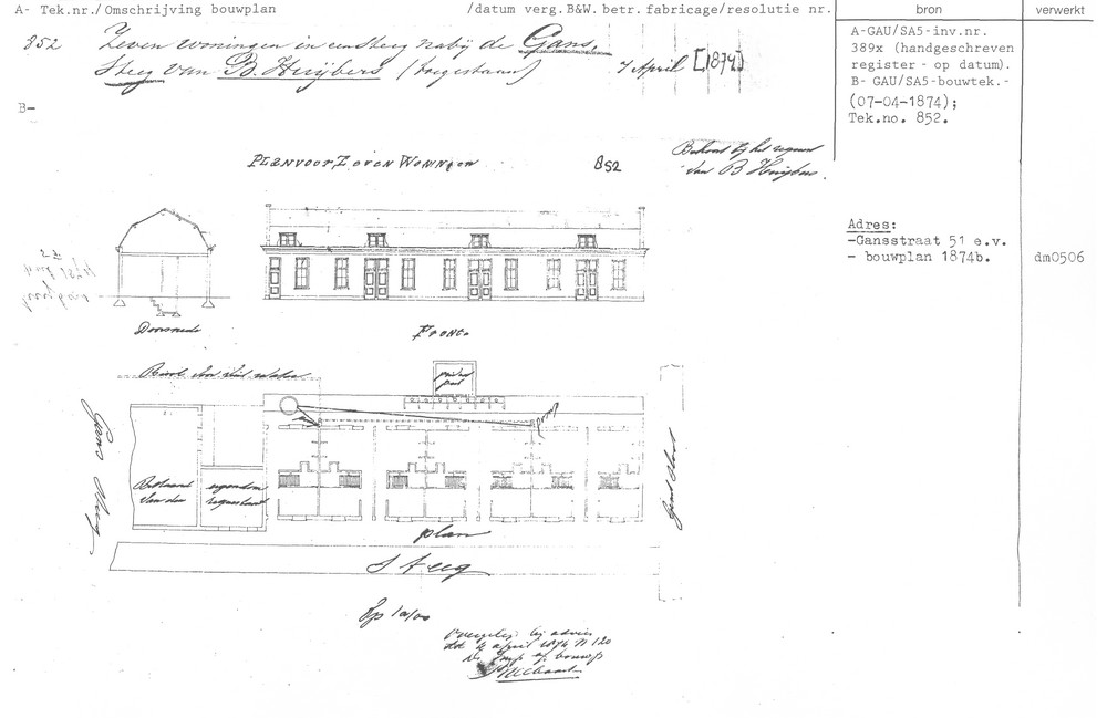 Utrecht - Gansstraat 51 e.v. - bouwplan 1874b