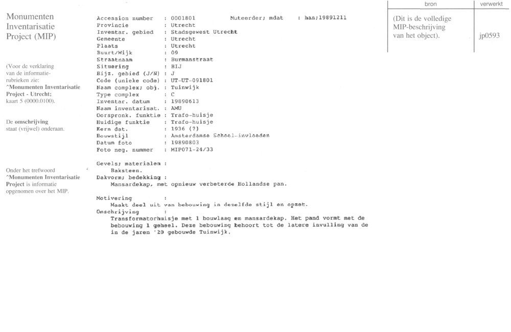 Utrecht - Burmanstraat - Trafohuisje