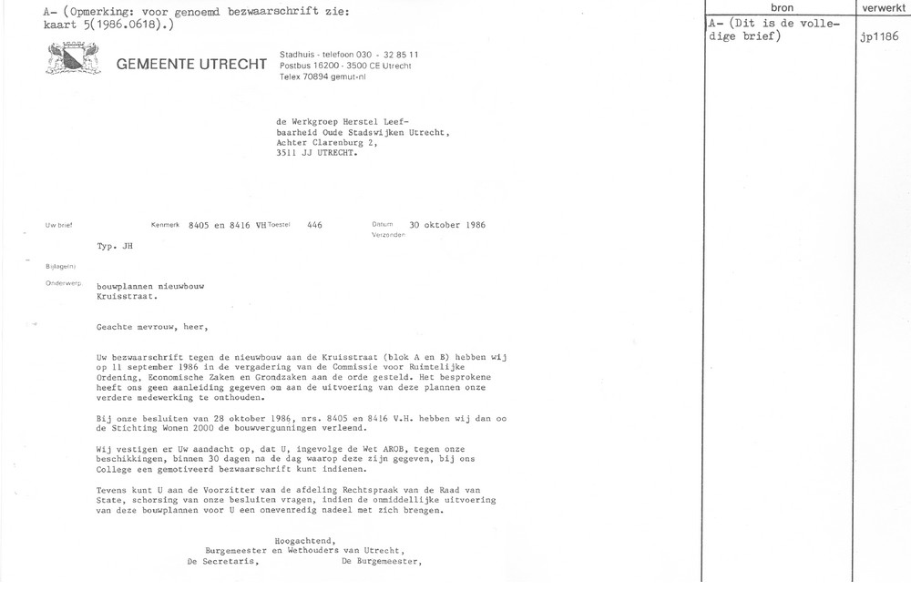 Utrecht - Kruisstraat 2 e.o. - bouwplan 1986