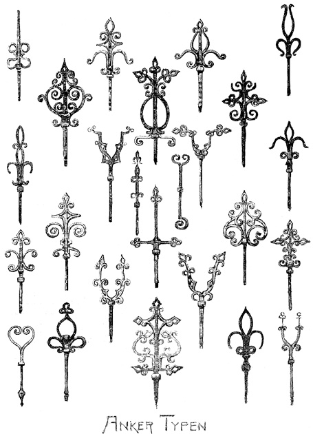 Tekening muurankers naar tekeningen uit de collectie van Mr. S. van Gijn