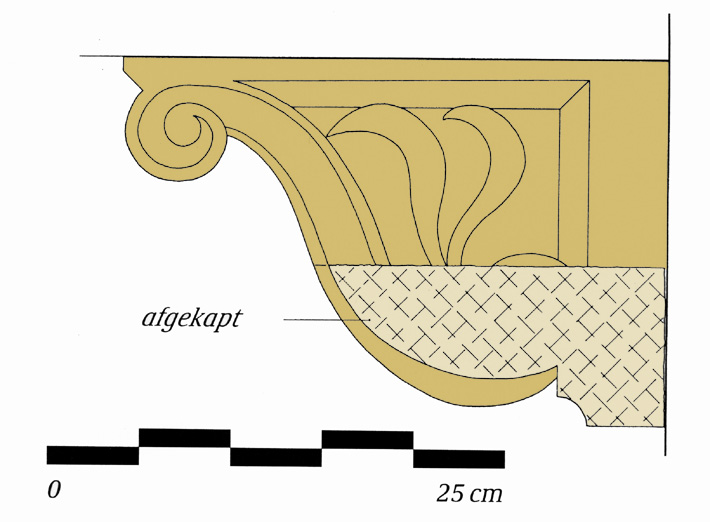 Utrecht - Predikherenkerkhof 5. Sleutelstuk, balkconsole. Datering: 1583 (archief, bouwhistorische context)