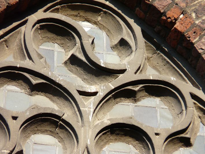 : zuidzijde schip, venster met visblazen, onder meer in tweesnuit