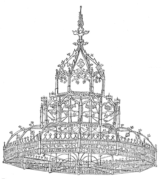Zutphen - Sint-Walburgskerk, kroonluchter "Grafkroon". Gepubliceerd in Tutein Nolthenius, R.P.J., ""Oud-Zutphen"". In: Bouwkundig Tijdschrift, 1899 [deel 17]. Ook uitgegeven als overdruk met eigen paginering [46 blz. ISBN -], t.o. blz. 12