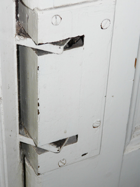 Dieren - Middelhovenstraat 2: boekscharnier van tochtdeur; het levende scharnier