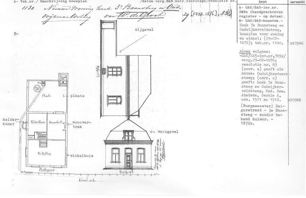Utrecht - (Burgemeester) Reigerstraat - 3e Baansteeg - zonder bekend huisnr. - 1876b