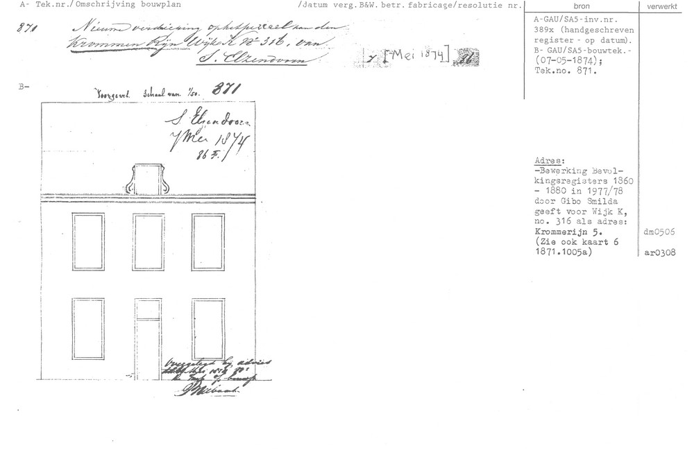 Utrecht - Krommerijn 5 - gesloopt - oud adres 1874.0507