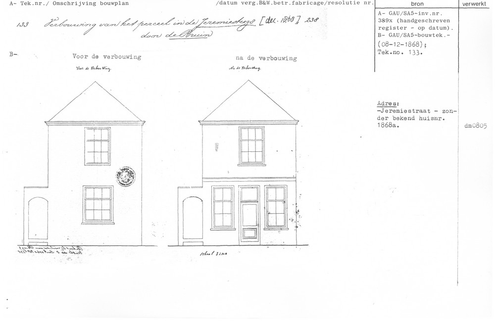 Utrecht - Jeremiestraat - zonder bekend huisnr. - 1868a