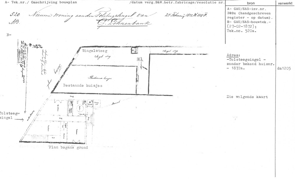 Utrecht - Tolsteegsingel - zonder bekend huisnr. - 1872a