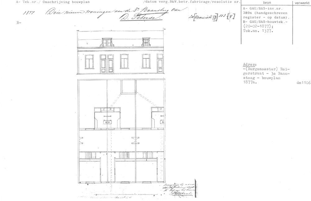Utrecht - (Burgemeester) Reigerstraat - 3e Baansteeg - bouwplan 1877a
