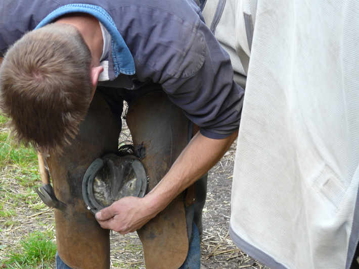 Beslaan van het paard Jelke van het Diepven, in Heeswijk-Dinther. Het paard (merrie, 5 jaar) krijgt zijn eerste ijzers van ambulante hoefsmid Johan van Veghel