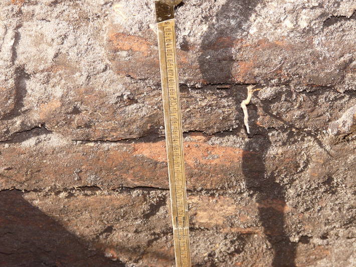 Bij steunbeer AB 6: de ontgraven voet van de eerste fase van de stadsmuur