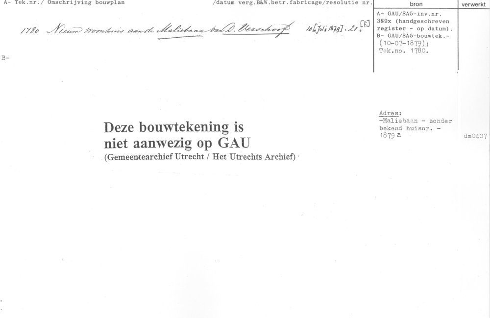 Utrecht - Maliebaan - zonder bekend huisnr. - 1879a