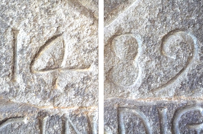 , detail van wapenschild van podesta met het jaartal