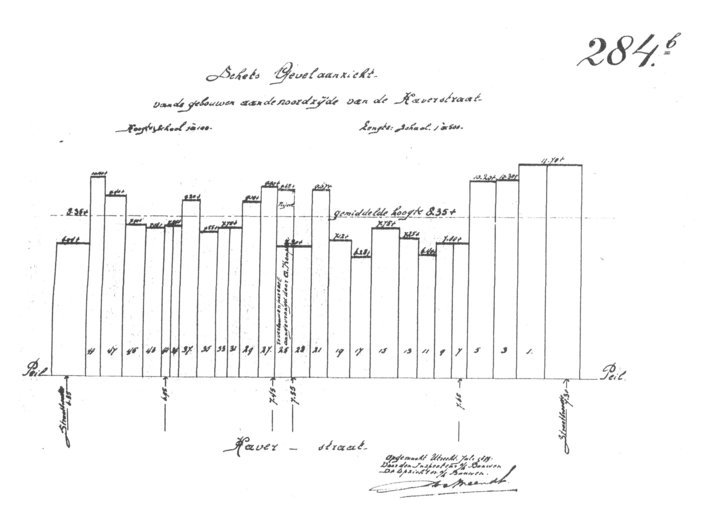 Opmerkingen: Bouwplan voor Haverstraat 27 (oud adres) te Utrecht: de goothoogten van de gevelwand als referentiekader bij het bouwplan. Voor het andere deel van dit plan: KLIK HIER