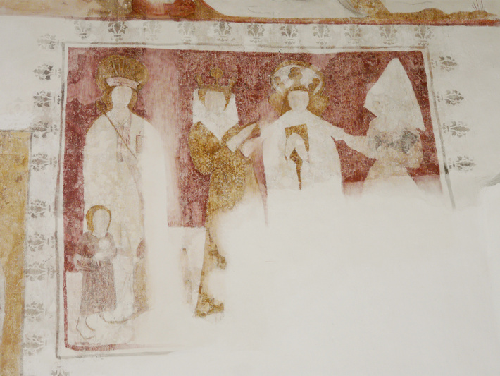 , interieur, noorder zijbeuk, oostwand met muurschildering