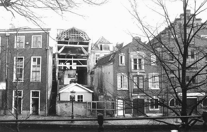 Utrecht - Twijnstraat 21 zonder achtergevel. Rechts daarvan Twijnstraat 23 en het huis achter 23 aan de werf. Links het huis achter Twijnstraat 19 behorend bij nr 15