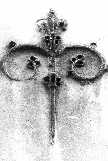 , rechter zijgevel, Wijde Watersteeg, 2e muuranker (met drakenkop) vanaf de Twijnstraat (tussen begane grond en 1e verdieping)