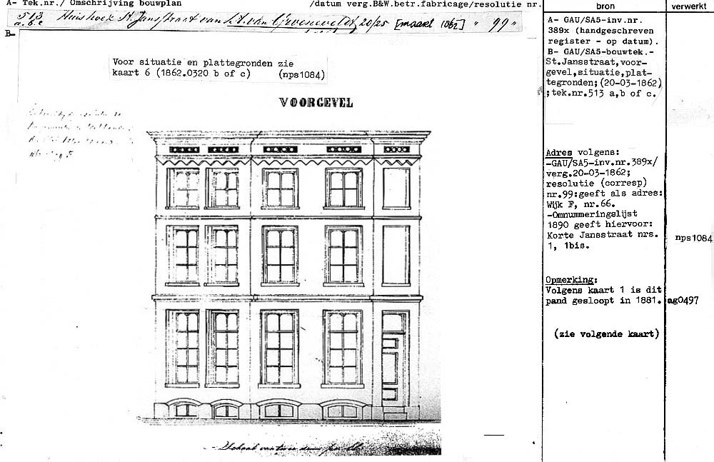 Utrecht - Korte Jansstraat 1 - gesloopt 1881 - oud adres 1862.0320a